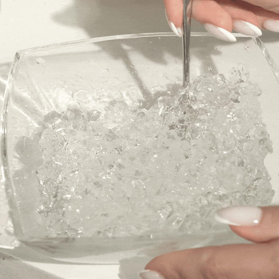 The transformation is complete. In just six hours, the dry granules have absorbed maximum water, turning into a high-capacity “jelly” reservoir ready to nourish crops.